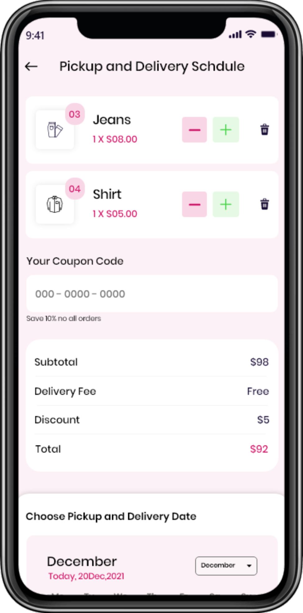 The laundry care app is empowered with a dashboard feature that allows admins to control all the activities where they can manage vendors, category management, order tracking, report generation and multiple features.