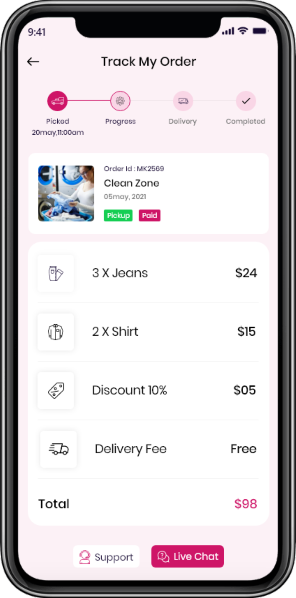 Once the work is done, the user can track their laundry order if they have requested the collection and delivery of clothes. If they have not opted for delivery, then they can also track job status. Â