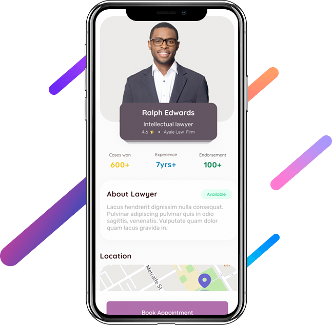 Our experienced app development team develops lawyer app solutions that help legal services seekers book an appointment with a lawyer instantly.