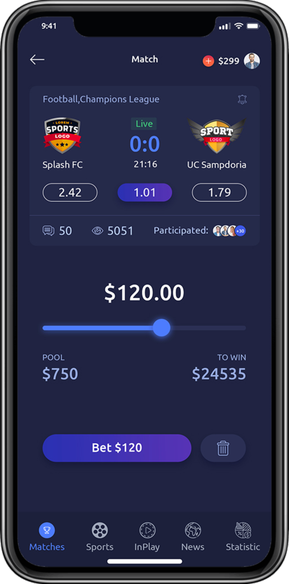 Single betting option for first-time users allowing participants to risk low and gain more. Integration of this feature in football betting app development or others can help your users calculate the profits from the bets in real-time, while stakes only cost a single unit of currency.