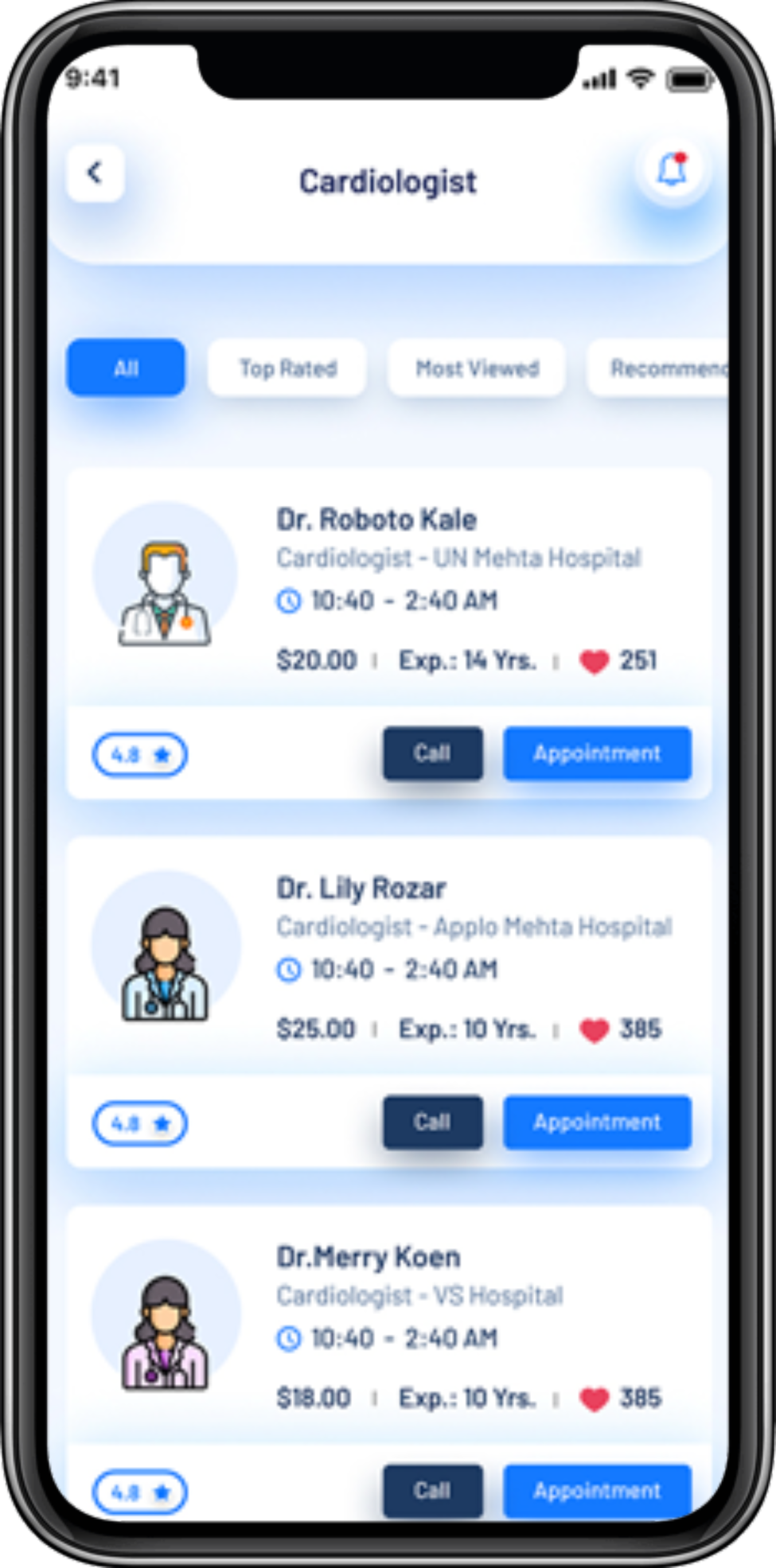 Being a leading doctor appointment app development company, we ensure the best experience of online doctor appointment booking app that you can leverage to expand your services to reach the target audience. From the resource point of view we have a team of talented mobile app developers, latest tech stack and programming tools. Our developers are highly experienced in providing high-end solutions for doctors, hospitals, clinics, and health centre.