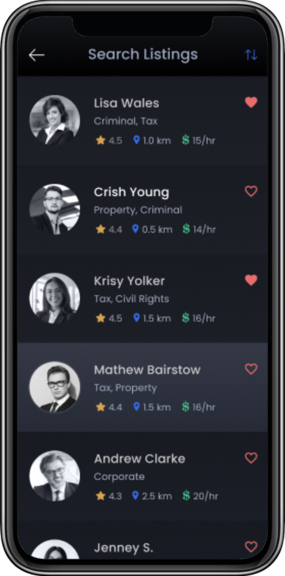 The app is equipped with empowered search filters that facilitate the clients to find a suitable lawyer.